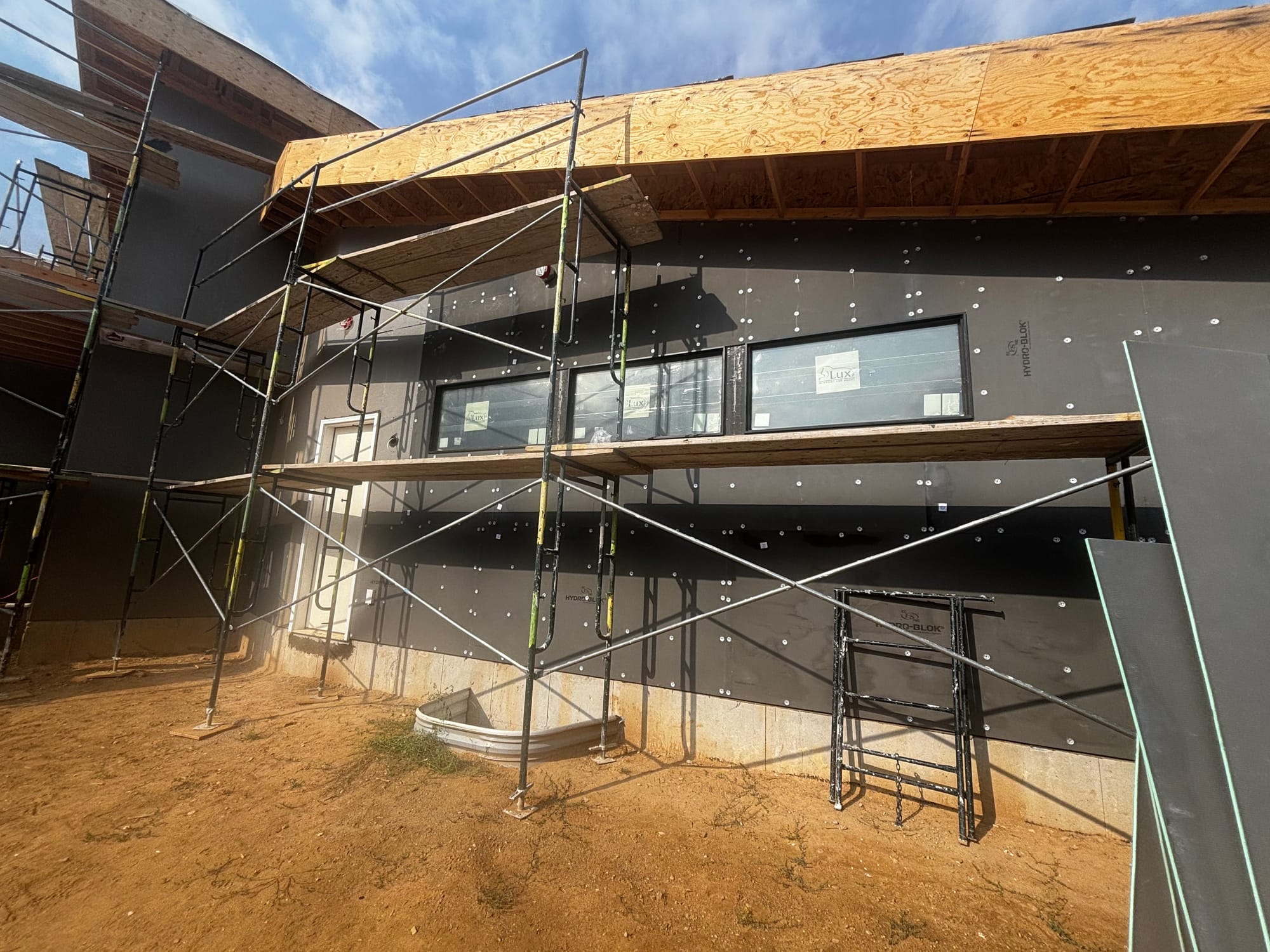 HydroBlok panels combine a XPS foam core with cementitious layers reinforced by fiberglass mesh, creating a product that is water- and mold-resistant, fire-rated, lightweight, and highly energy-efficient. When used with stucco, a component in roughly half of new builds, HydroBlok can reduce material and labor costs by 20% or more, while eliminating multiple traditional steps and speeding construction timelines.