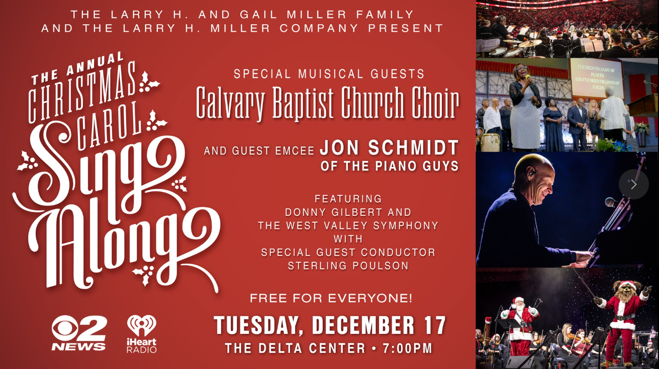 On December 17, 2024, the Larry H. and Gail Miller Family and the Larry H. Miller Company will present at the Delta Center their Annual Christmas Carol Sing-Along, featuring the Calvary Baptist Church Choir and guest emcee Jon Schmidt of The Piano Guys.