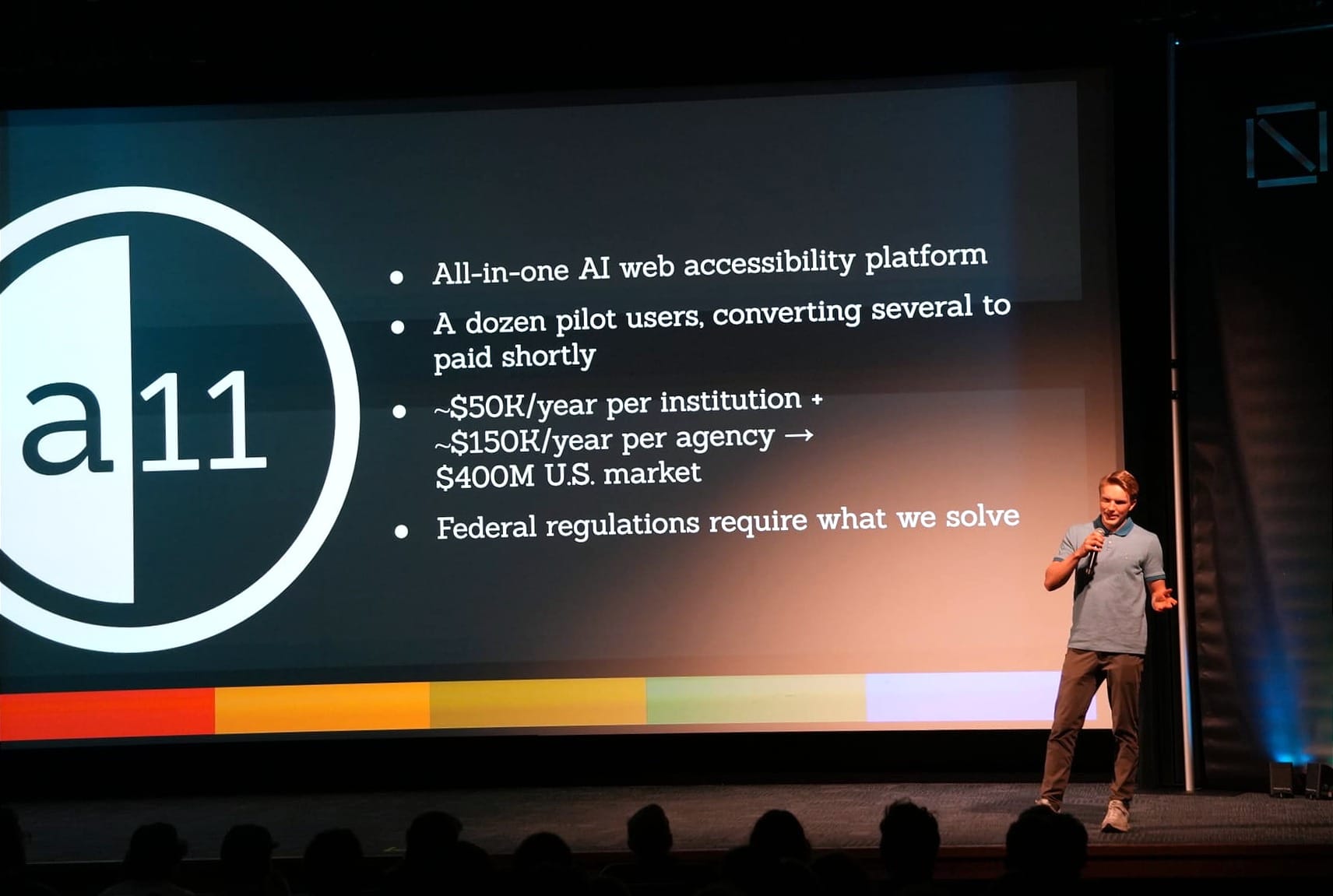 A11 is addressing digital accessibility compliance for universities, converting lecture content into fully accessible documents and videos in one place — already piloted with over a dozen institutions. Admission Software is building the intake management system for the CAPS network, a fast-growing high school program giving students real-world industry experience; the product is fully built and the market — 150 schools — is defined. Post Game AI turns a coach's voice memo on the drive home into individual player feedback, team insights, and skill resources, with 60 active users and several Utah youth soccer clubs ready to onboard.
