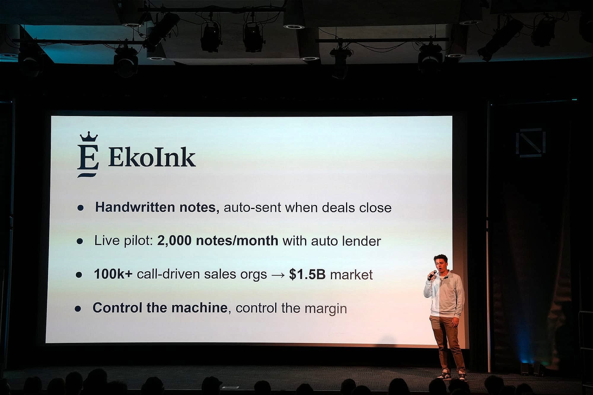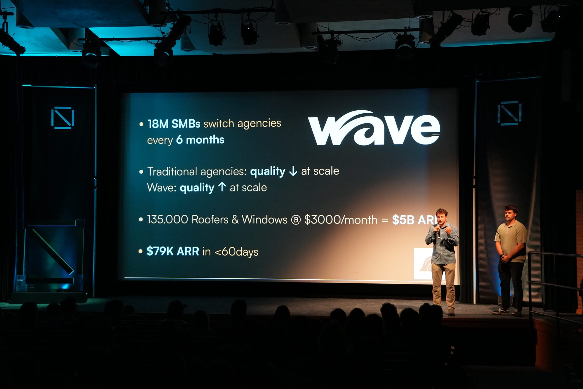 EkoInk is solving a different kind of sales problem: the thank-you note nobody sends. The company automates the entire process of sending handwritten notes to customers — from the sales call through handwriting and mailing — and is going live with an auto lending company processing 2,000 notes a month. Wave, an AI-powered marketing agency tool for roofing and window contractors, arrived at $79,000 in ARR in under 60 days.