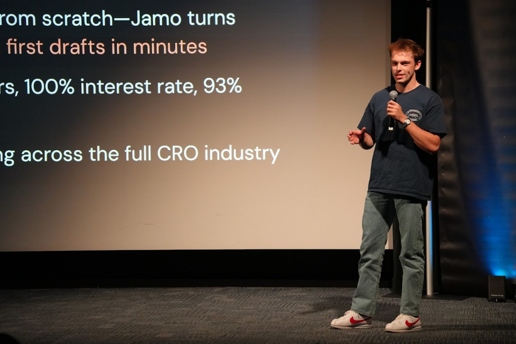 Two teams are targeting the contract research organization space, where proposal creation for clinical trials can cost weeks and hundreds of thousands of dollars. Jamo is an AI proposal manager that compresses that work to minutes, while a second team is building specialized negotiation and budgeting agents for the same industry. Both teams are in early pricing conversations with potential clients.