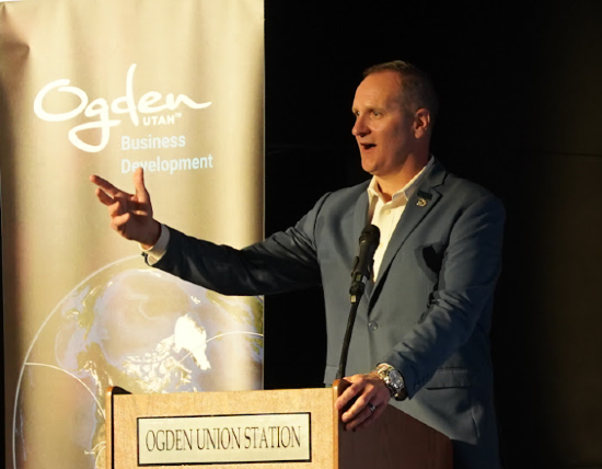 Ogden City Mayor Ben Nadolski welcomed attendees with remarks about the city’s character and legacy. “Ogden is a city of grit. We are a city of determination. It is rooted in our people. It is in our bones. It courses through our blood,” he said. He described Ogden as a community built on opportunity, historically shaped by its location and spirit of service. “This city became who we are because of where we are today… Our people are ready to level up.” Nadolski closed by affirming that public service—and service to the greater good—is at the heart of Ogden’s identity.