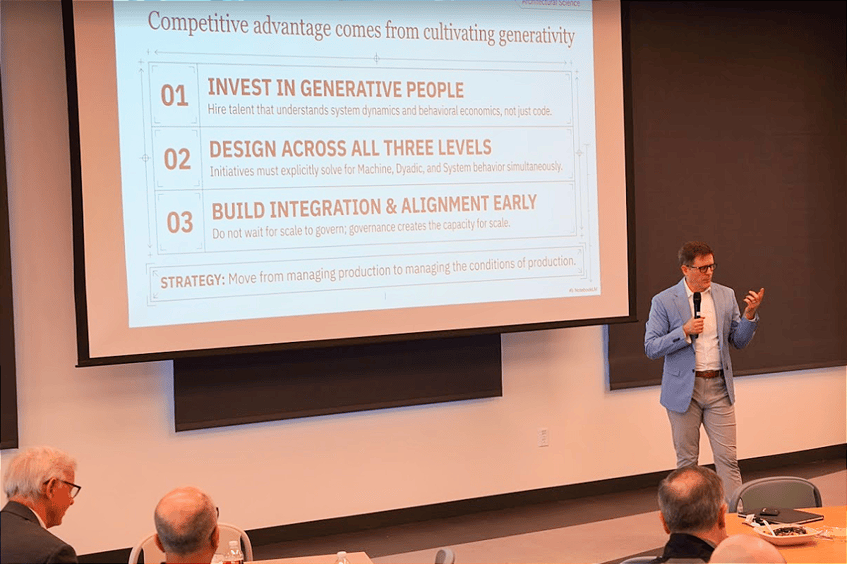 - Systems-level behavior – How humans, machines, and organizational structures interact as a network. Effective AI adoption requires modeling these interactions to ensure integration and alignment, otherwise interventions can cascade in unintended ways. Burns emphasized: “If you don’t integrate it, and it’s not aligned, and it’s not governed wisely, you will actually lose—and there are times the systems collapse.”
