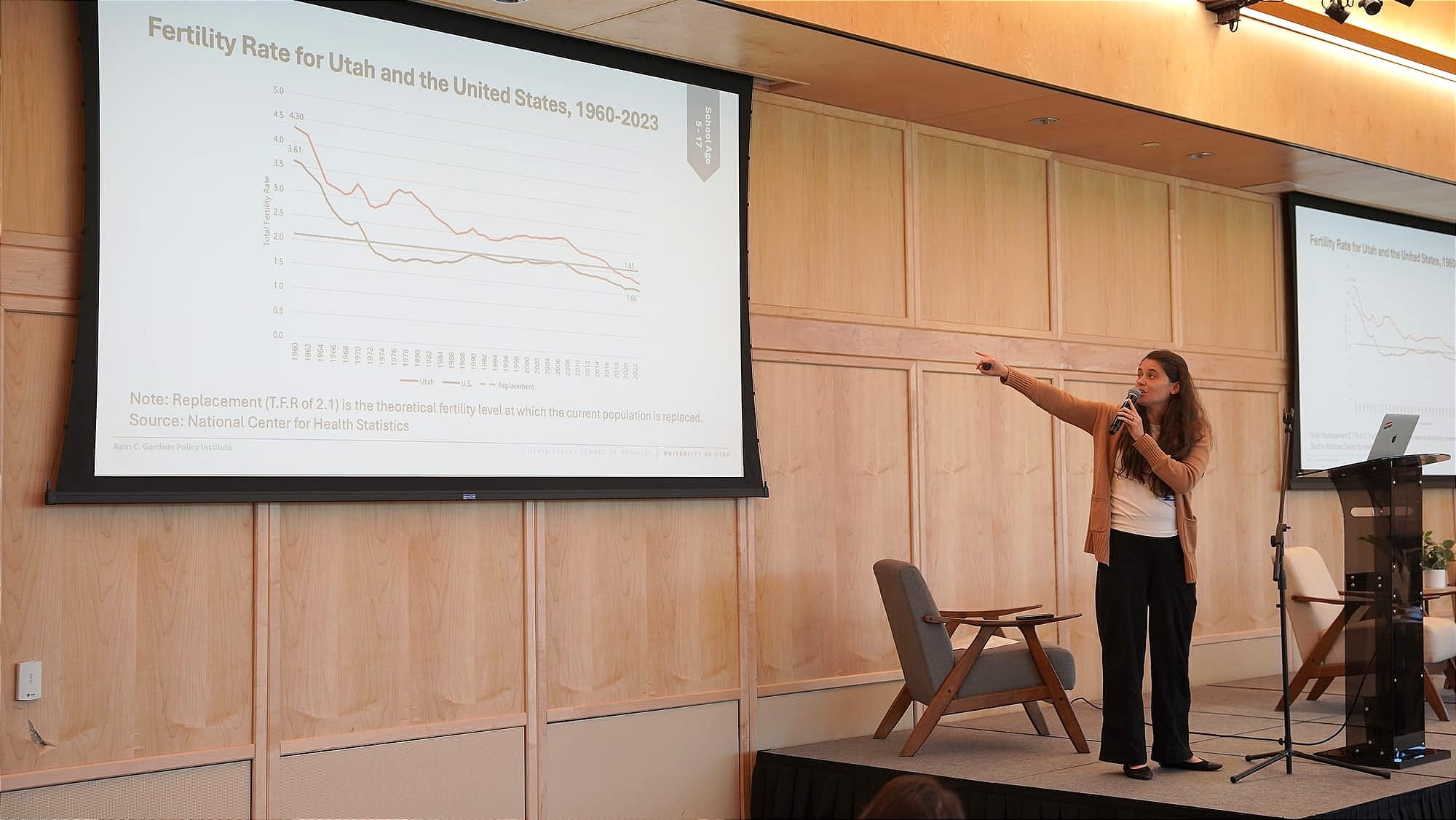 Andrea Brandley, a senior education analyst at the Kem C. Gardner Policy Institute, delivered the summit's most data-dense presentation — and arguably its most urgent.