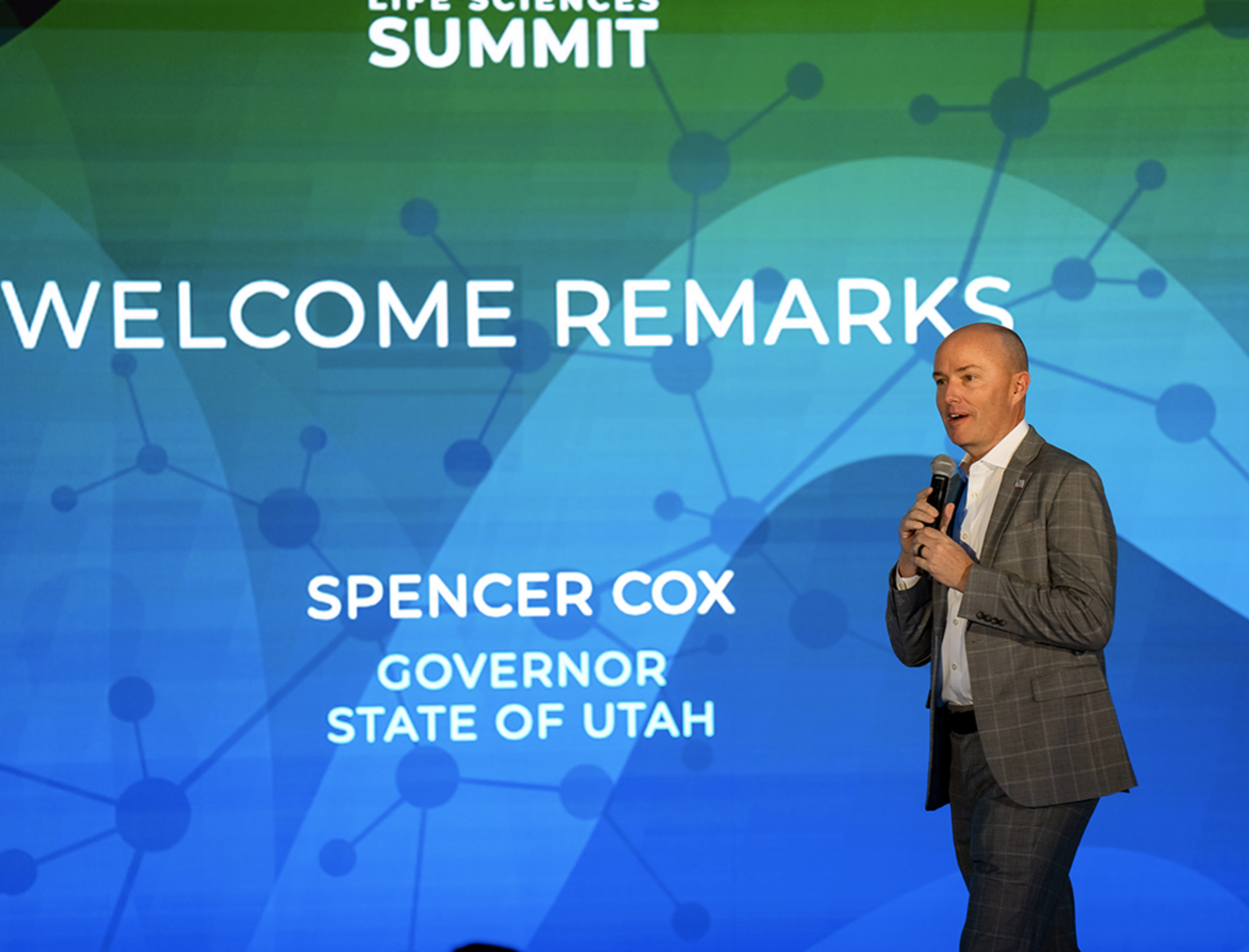 Governor Spencer J. Cox opened the summit by expressing his support for Utah's contribution to life science not just in the state, but globally. “People are living longer, healthier, and better lives all over the world because of companies right here in Utah.” He told attendees that the average wage is 50% higher in the life science industry for the state of Utah. Cox underscored Utah’s global recognition and economic success, attributing Utah’s top ranking to the innovative spirit of its people. He praised the industry’s innovations, such as computerized brain interaction technologies, and even shared a personal story about his siblings’ cystic fibrosis, emphasizing the life-saving impact of new medications such as cystic fibrosis drug, Trikafta.
