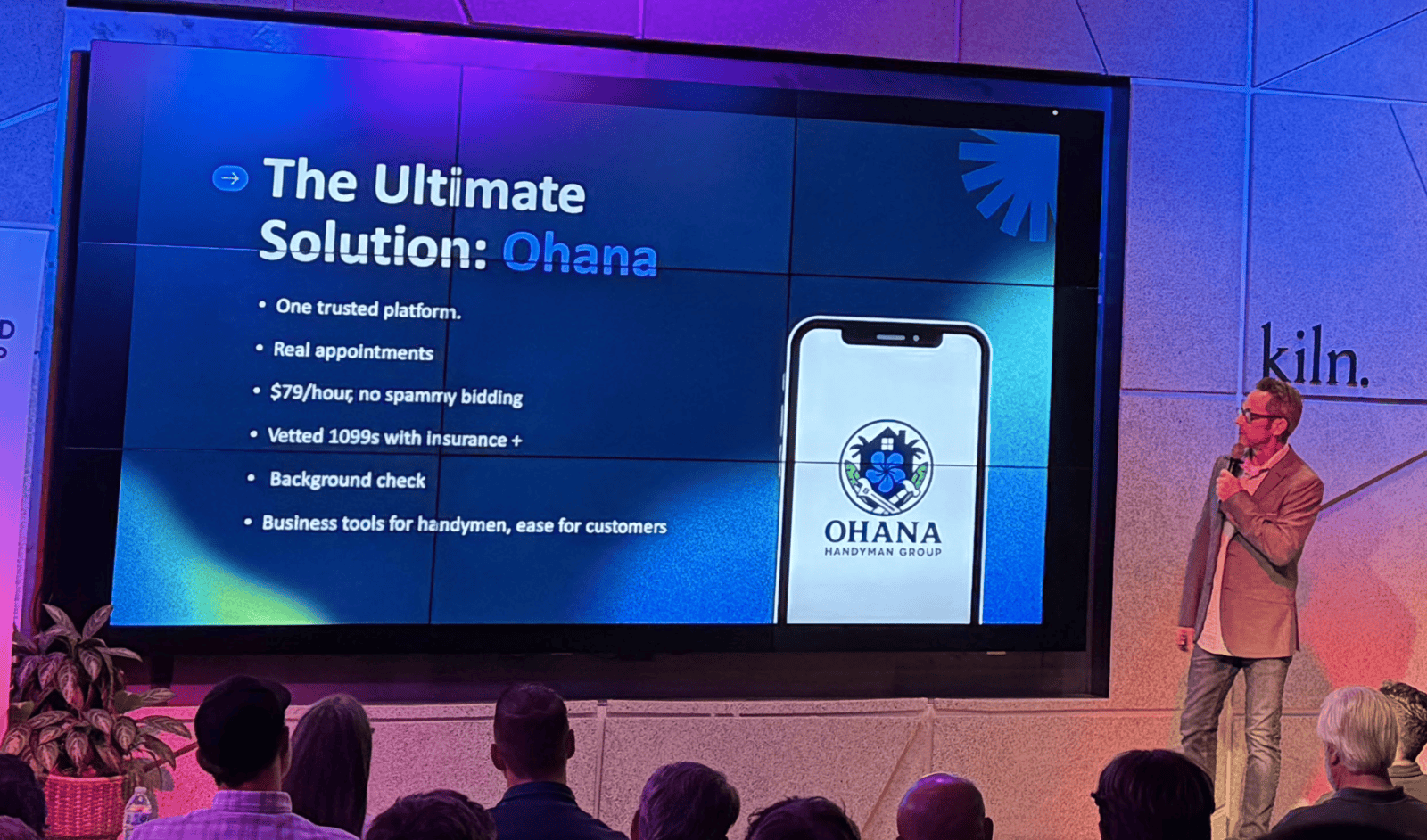 Joshua Ezell took the stage with a relatable mission: fixing the broken handyman industry—starting with a platform that just works. “Just because you’re a great pie maker doesn’t mean you should own a pie shop,” he said. “Handymen are great at fixing homes, not juggling calls, marketing, and billing.” He built Ohana Handyman Group for people like Judy—a customer who once waited all morning for a no-show contractor. Now, she can book in minutes, view a technician’s bio and photo, and know exactly who’s coming. “I made this out of my office. I’ve helped thousands of people in Phoenix. And I’m just getting started.”