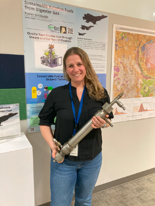 Established in 2017, OxEon is commissioning a system with support of the US Department of Energy Bioenergy Technologies Office to process waste gas at a wastewater facility just down the road from their site in North Salt Lake City, near the international airport. “OxEon’s system utilizes the biogas from their waste food digester.” This facility, called Wasatch Resource Recovery, gathers waste food from local restaurants, such as Cafe Niche, Cucina Wine Bar, and Market Street Grill & Oyster Bar. They put the waste food through a digester and it off-gasses different gasses. “We take the bio-CO2 and the biomethane through our system, converting this to sustainable aviation fuel. Integrating our systems into existing plants to efficiently utilize waste streams (like CO2), providing our customers with pathways to turn their current waste into useful products onsite.”