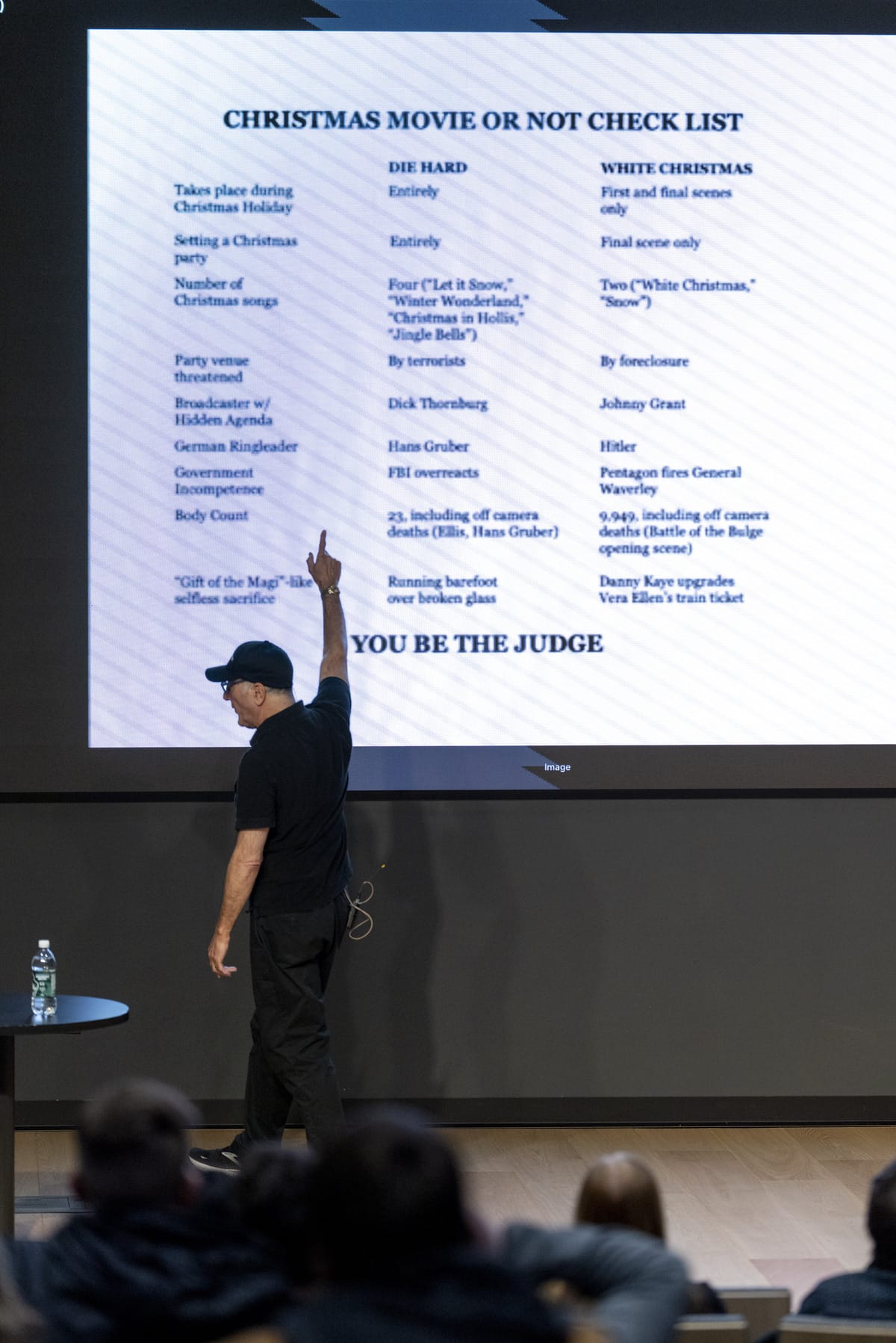 To the delight of an audience already geeking out over a steady stream of Die Hard trivia, de Souza revealed a last-minute challenge that arose at the end of filming: the villains’ escape plan. The idea of an ambulance hidden inside the van they arrived in wasn’t conceived until the final day of shooting. “Not everything needs to be written into the script from the start. The audience didn’t need a villain to announce they had an ambulance. The moment they see it, they immediately grasp the plan. That kind of visual storytelling is what makes a script work.”