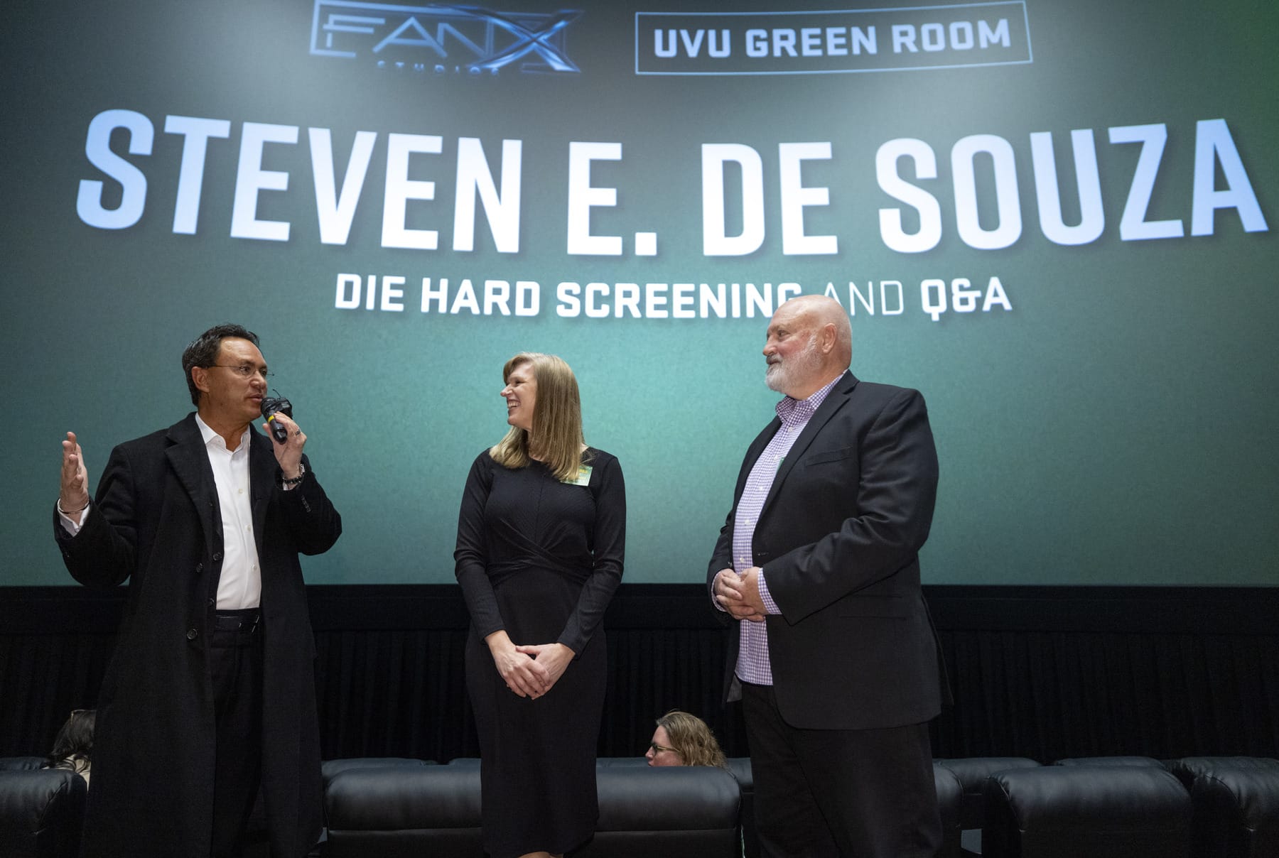 Key program supporter and generous donor Brandon Fugal attended the award ceremony and a special Die Hard screening at the Megaplex Theatres Geneva in Vineyard, Utah. A longtime admirer of de Souza’s work, Fugal shared his enthusiasm: “My worldview has been shaped by de Souza’s screenplays. What a privilege to have world-class talent mentoring our students and putting this program on the map.”