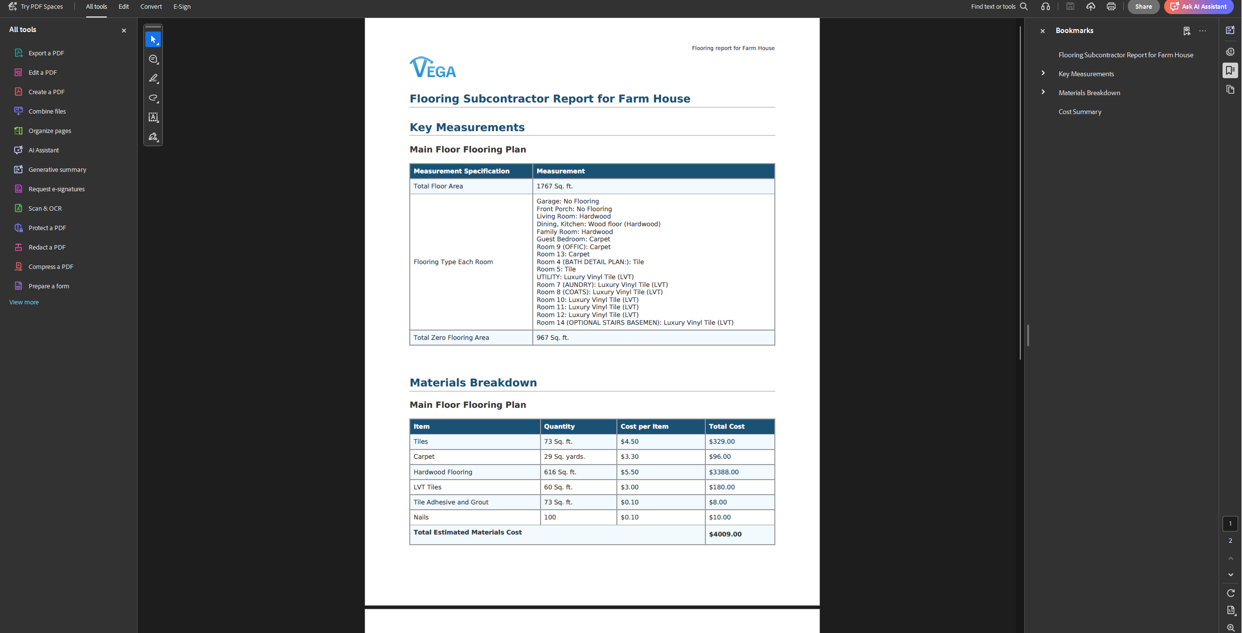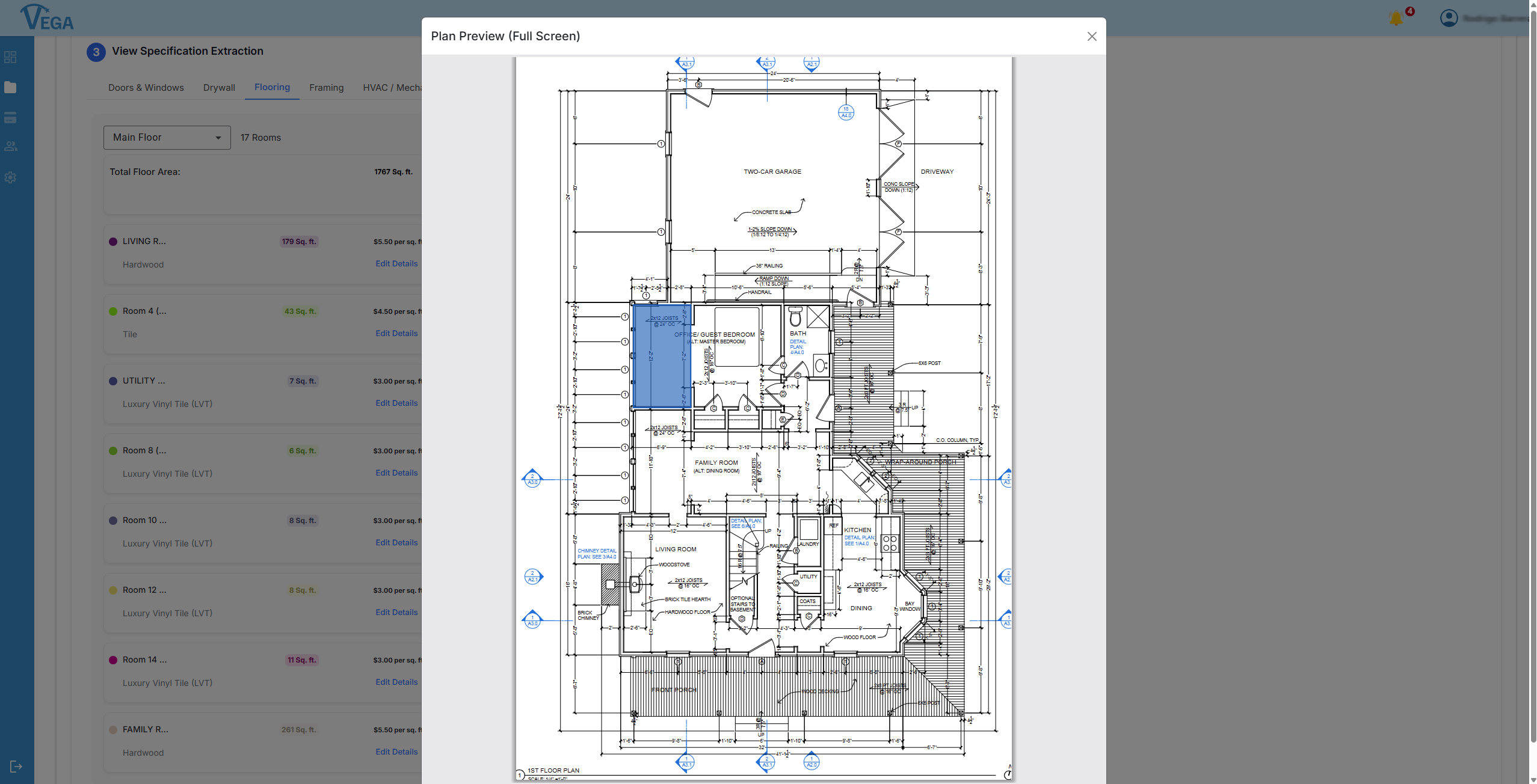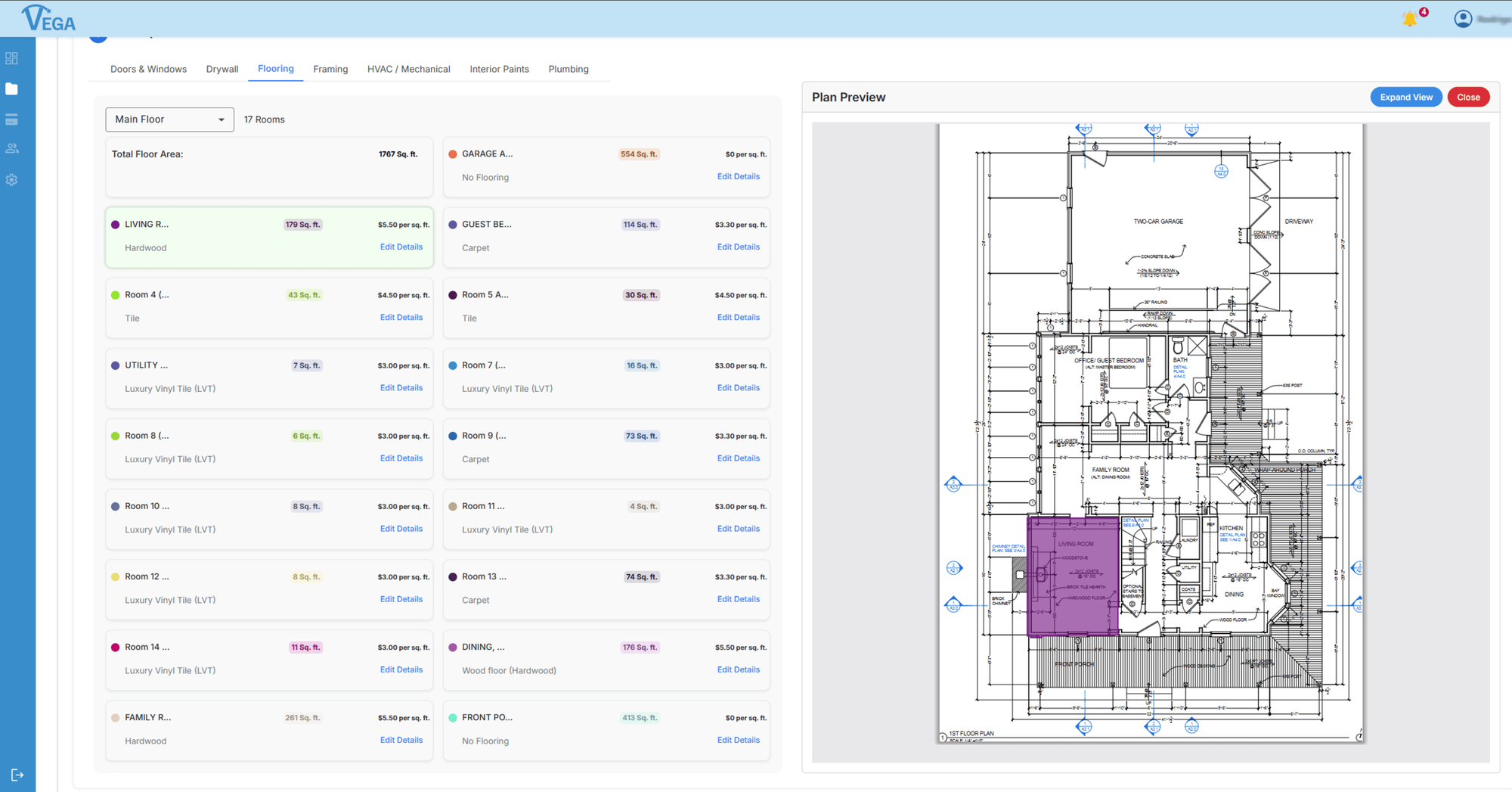 Vega Apps launched January 1, 2026, with support for 13 core construction trades, including flooring, drywall, framing, interior paint, HVAC/mechanical, plumbing, and electrical, with concrete, rebar, and excavation noted as coming soon. The system allows users to upload construction plans and receive detailed quantity takeoffs in minutes.